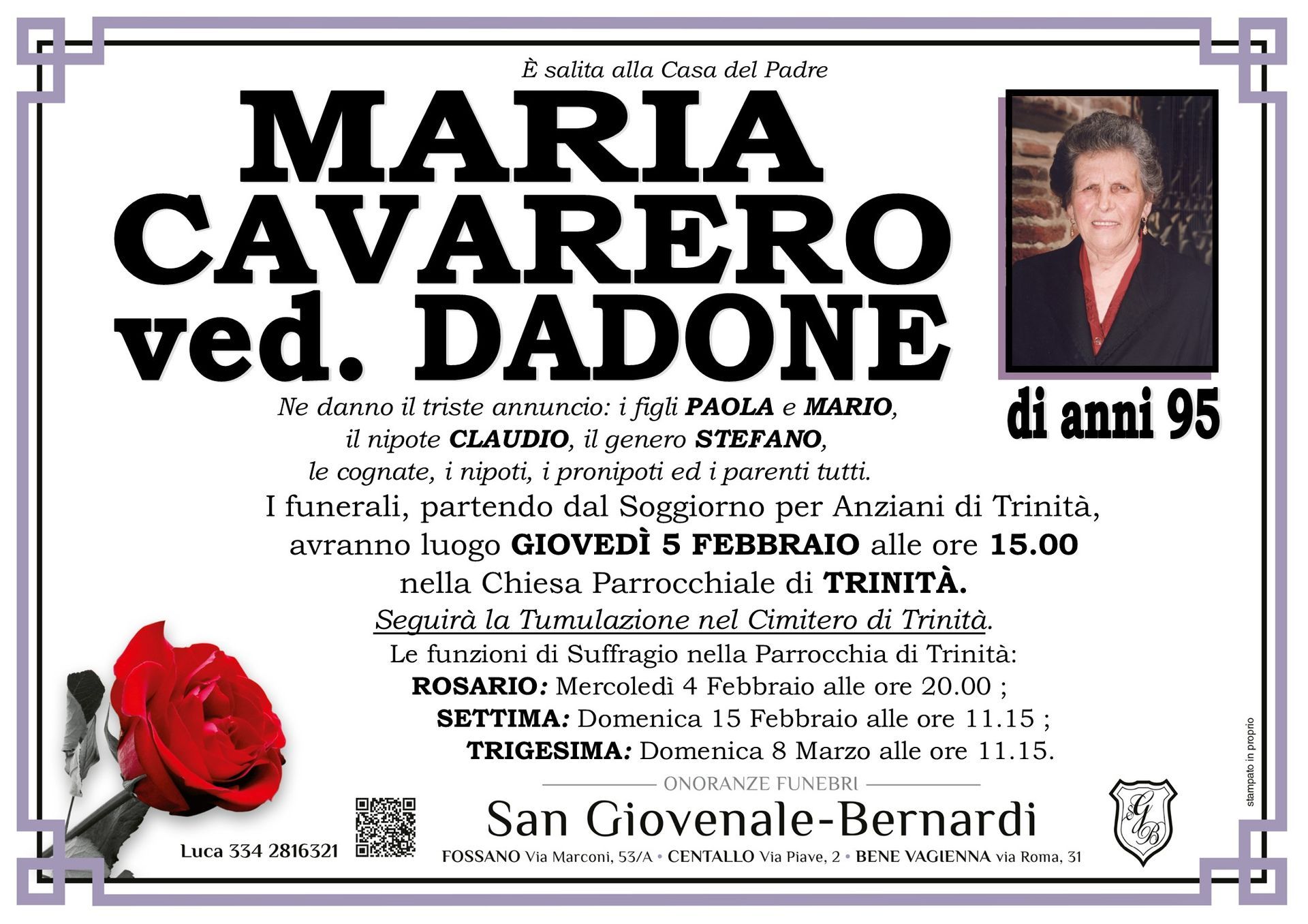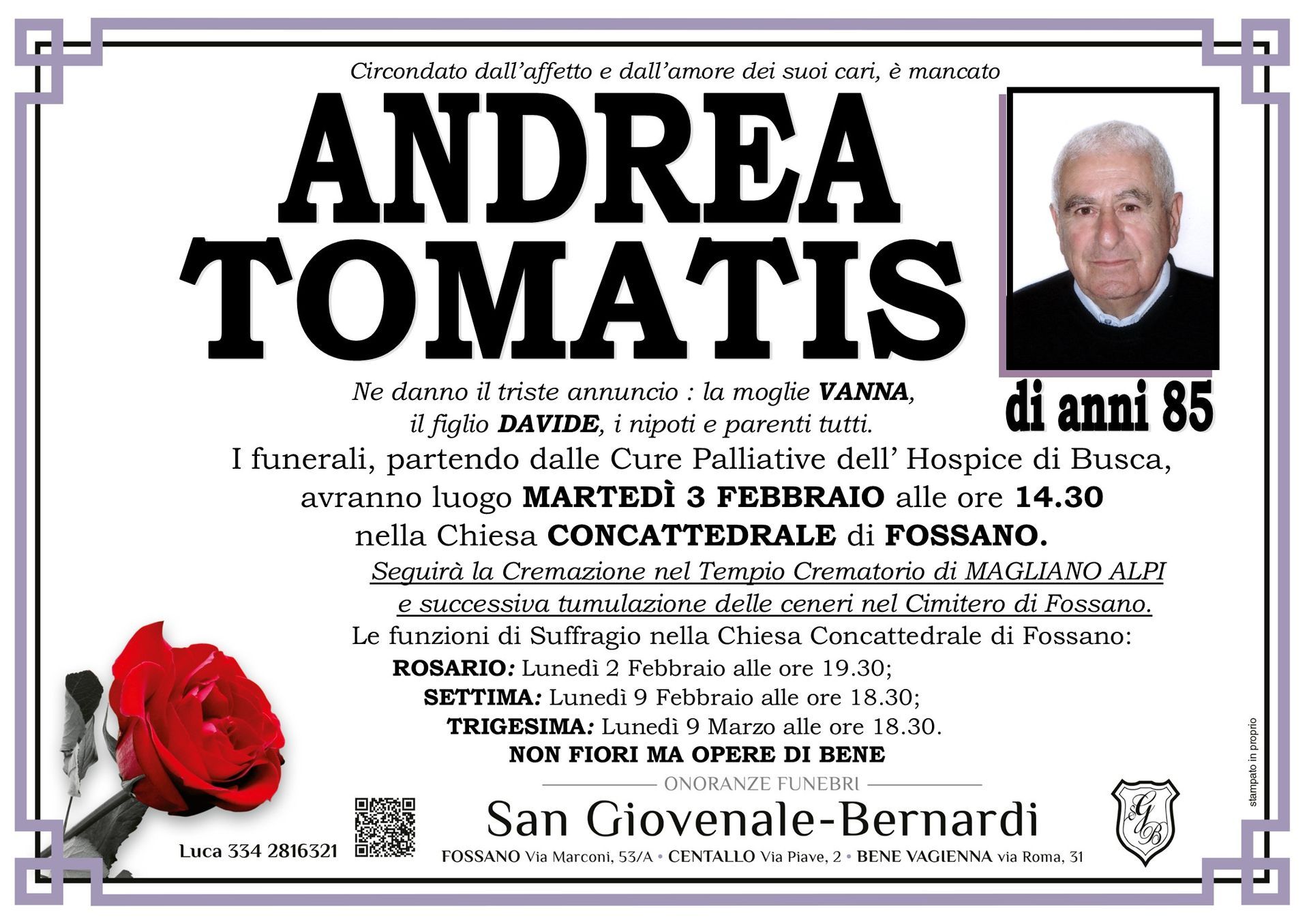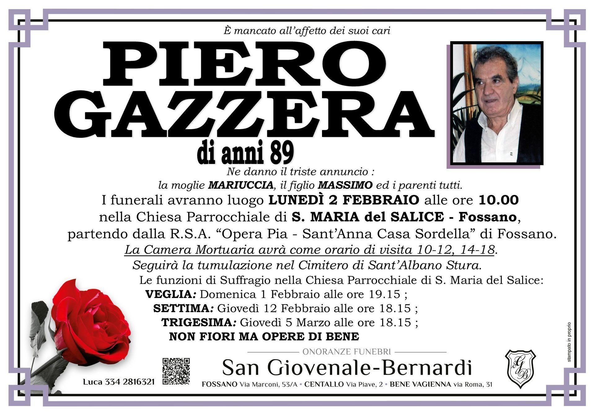 Visita la pagina dedicata: è possibile scrivere e inviare un messaggio di condoglianze per la persona scomparsa; sarà nostra cura consegnare il messaggio di cordoglio alla sua famiglia.