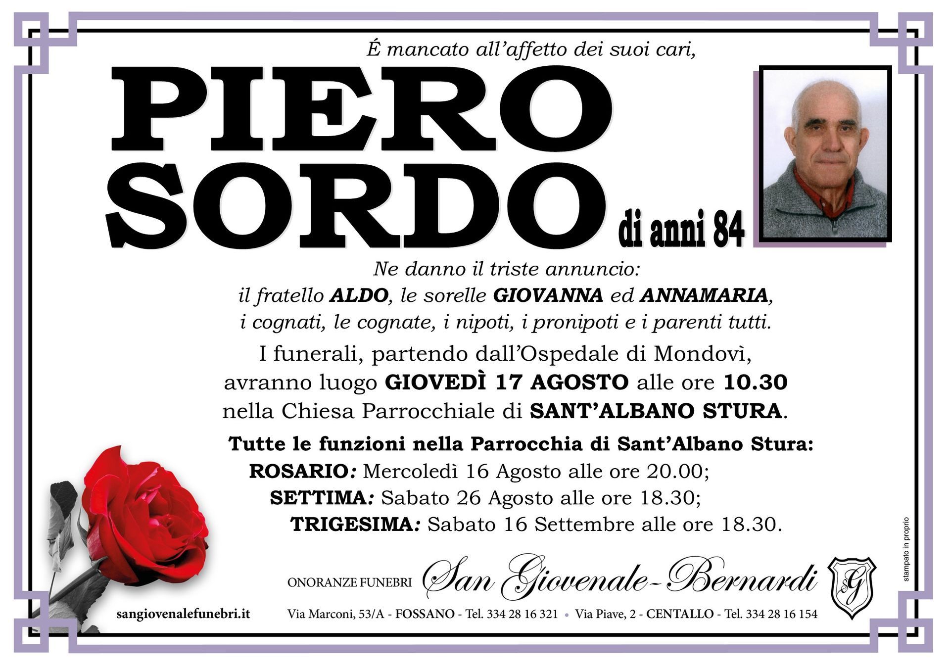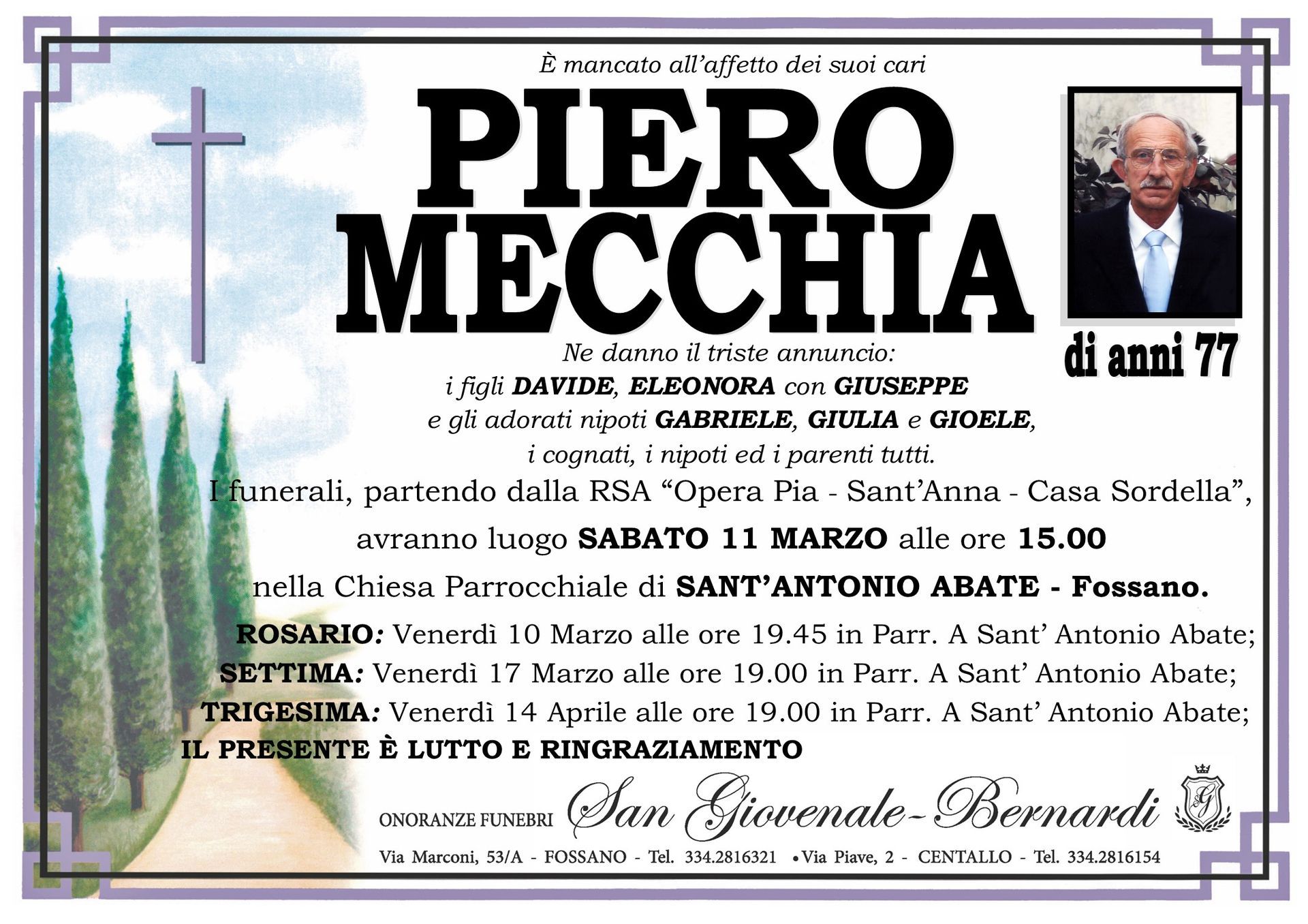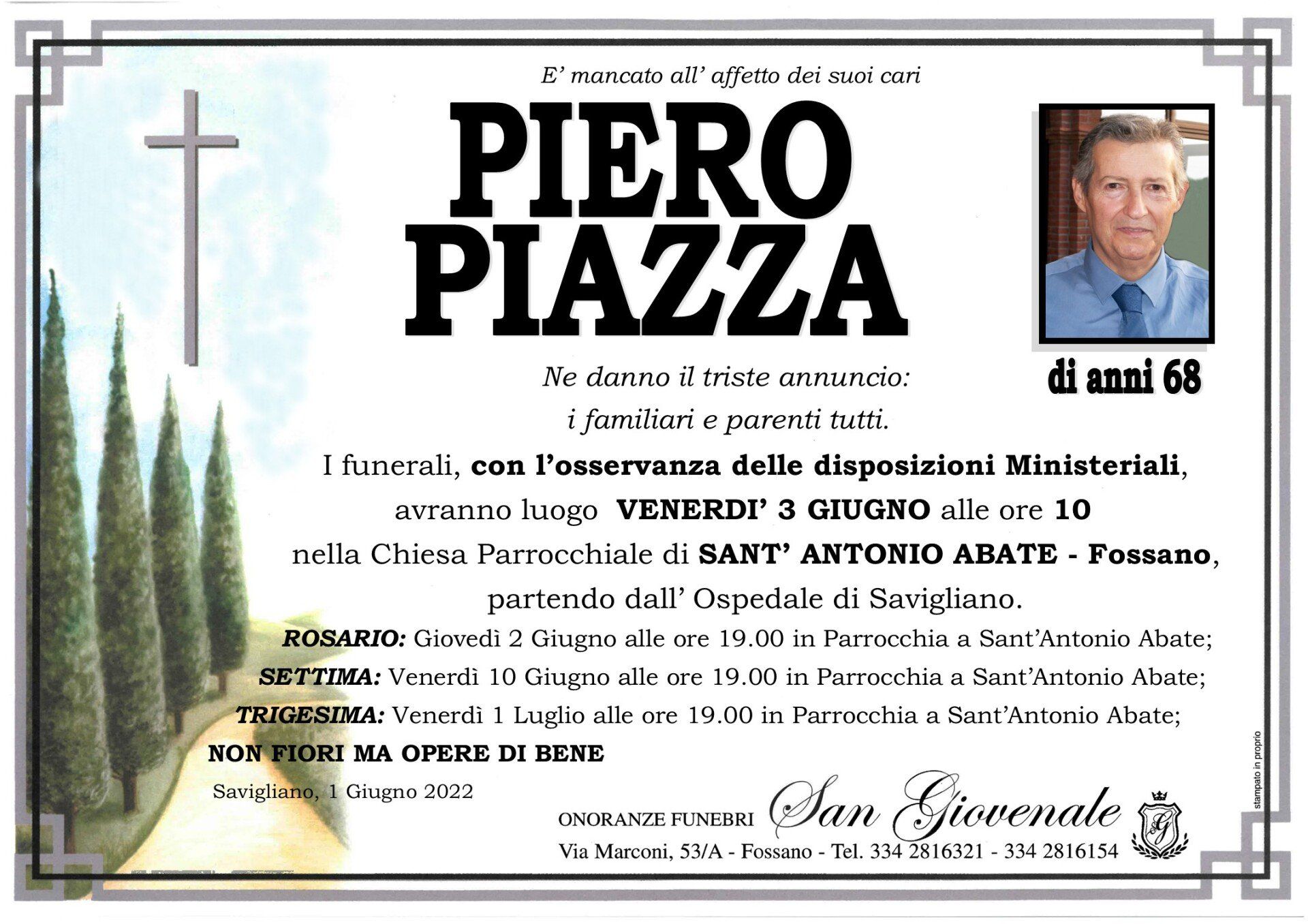 La moglie, i figli ed i familiari, commossi per la grande dimostrazione di stima ed affetto ricevuta, ringraziano di cuore tutti coloro che con varie espressioni di cordoglio, hanno condiviso la scomparsa del loro caro Piero e ne conserveranno affettuosa memoria.