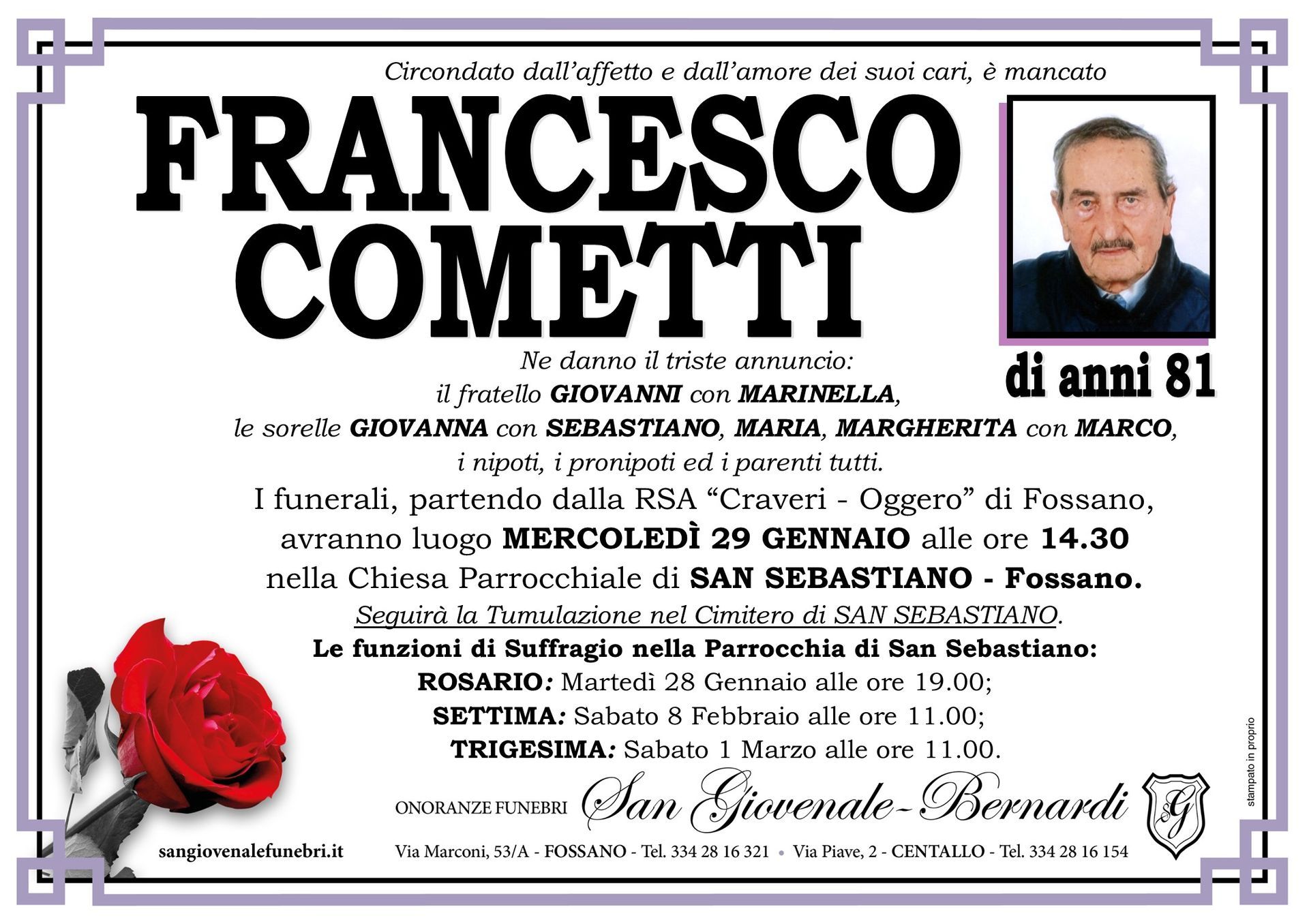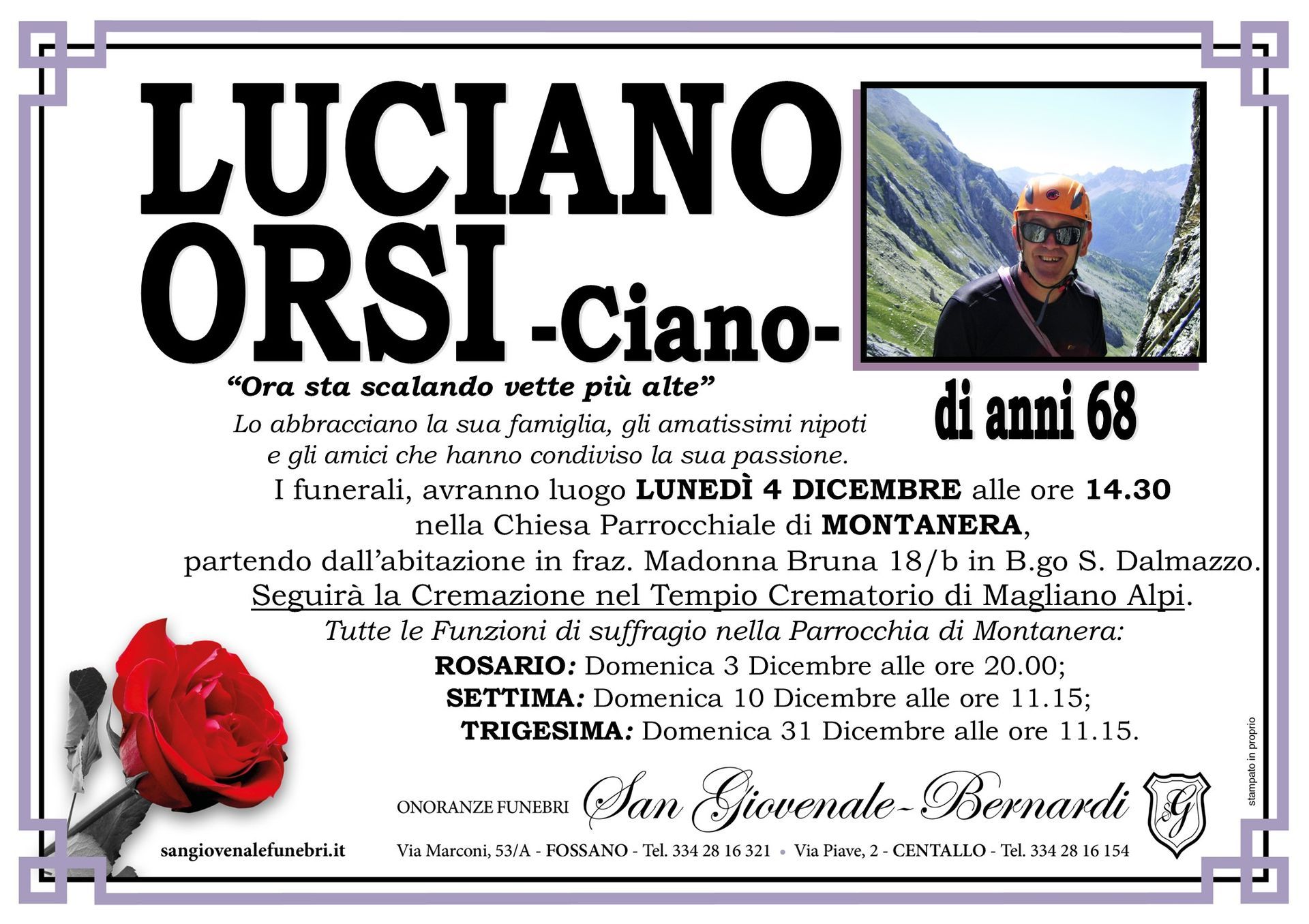 I famigliari tutti, nell’impossibilità di farlo personalmente, ringraziano di cuore coloro che, con sentiti affetto e cordoglio, si sono uniti per l’ultimo saluto al loro caro Ciano, e conserveranno di lui affettuosa memoria.