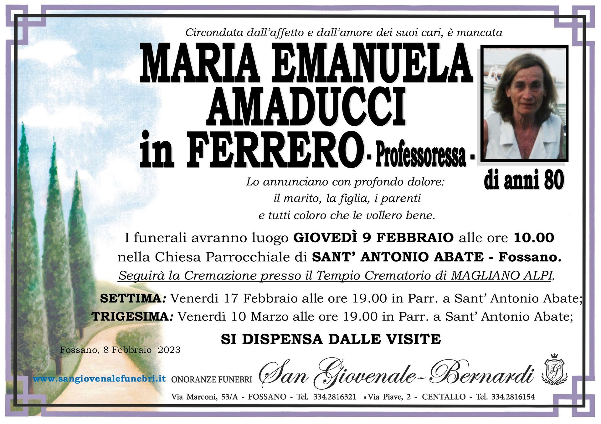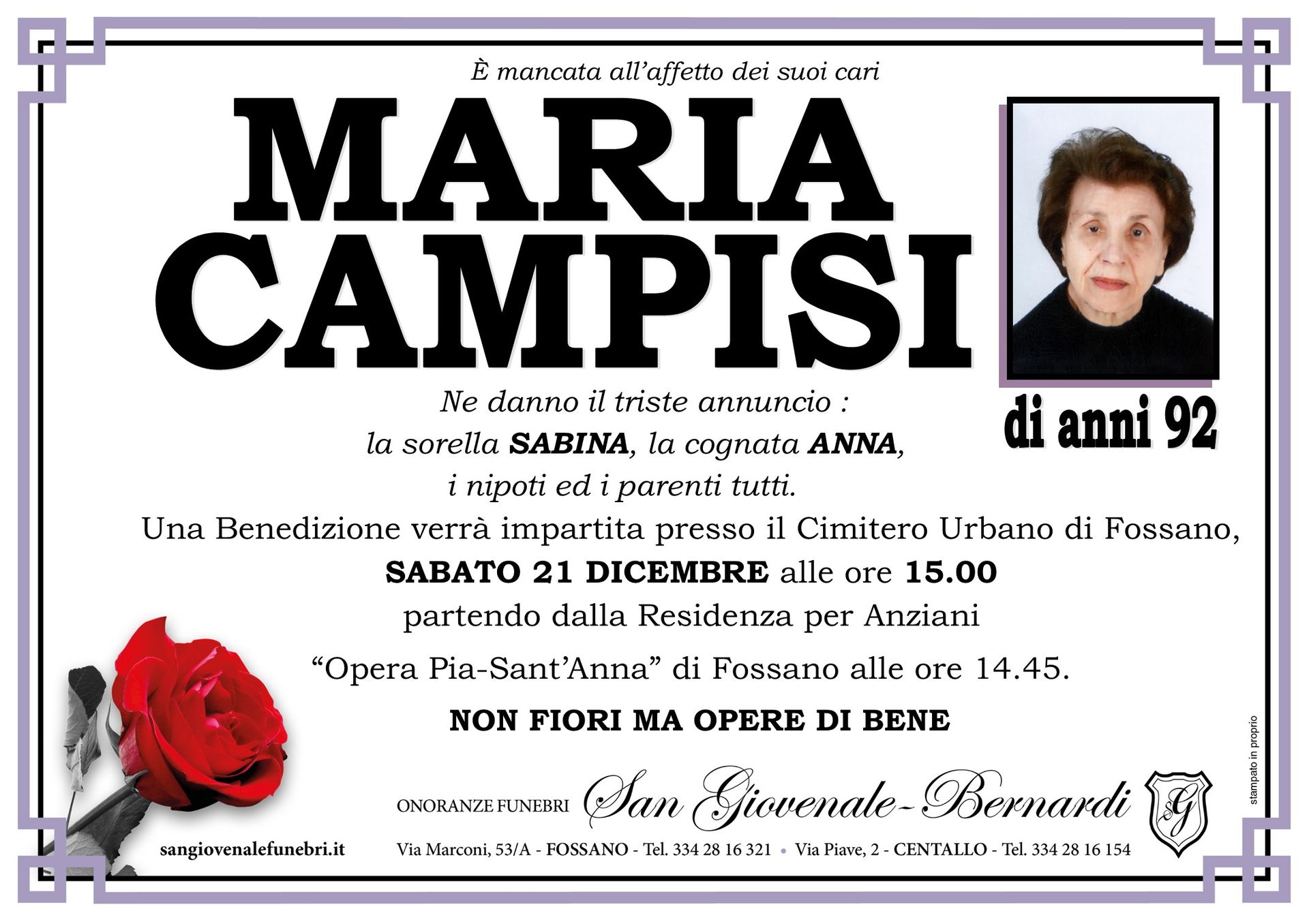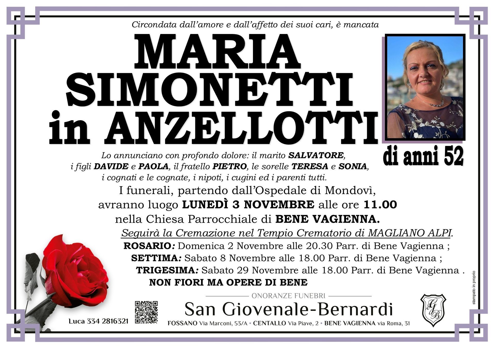 Il marito, i figli ed i parenti tutti, commossi per l’ affettuosa partecipazione, ringraziano quanti hanno preso parte al loro dolore e conserveranno di Lei affettuosa memoria.