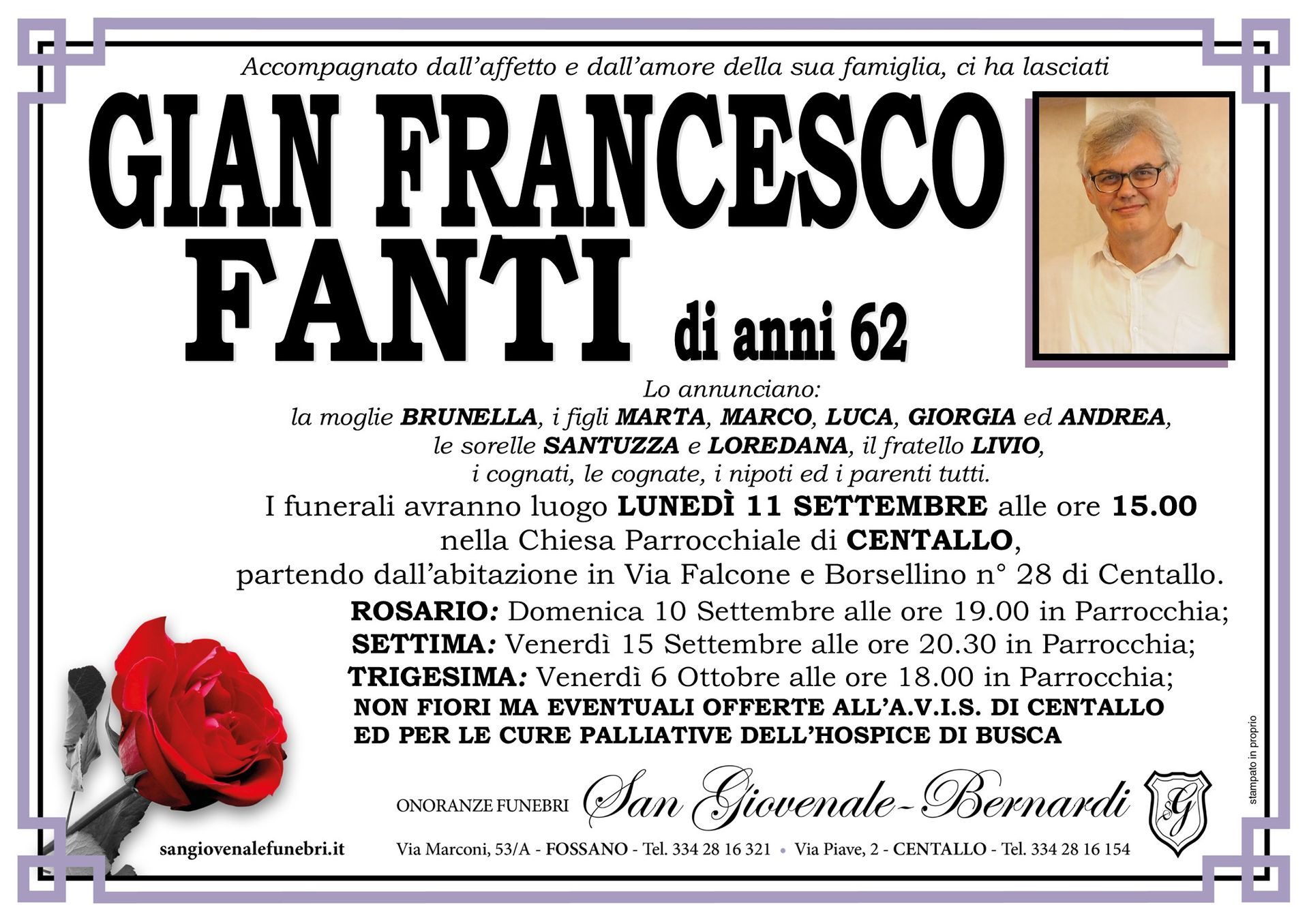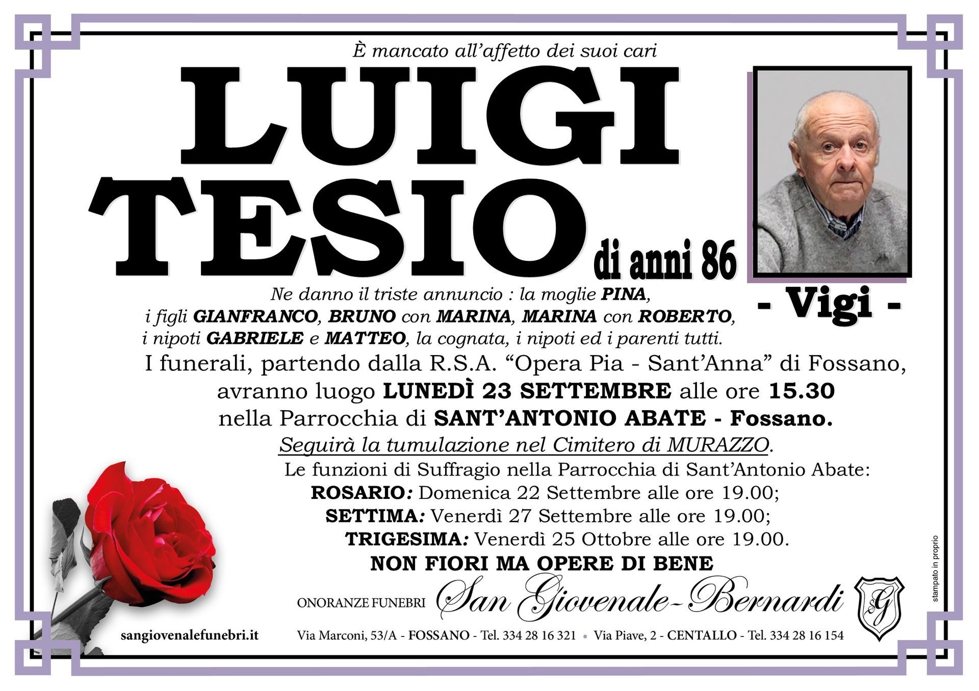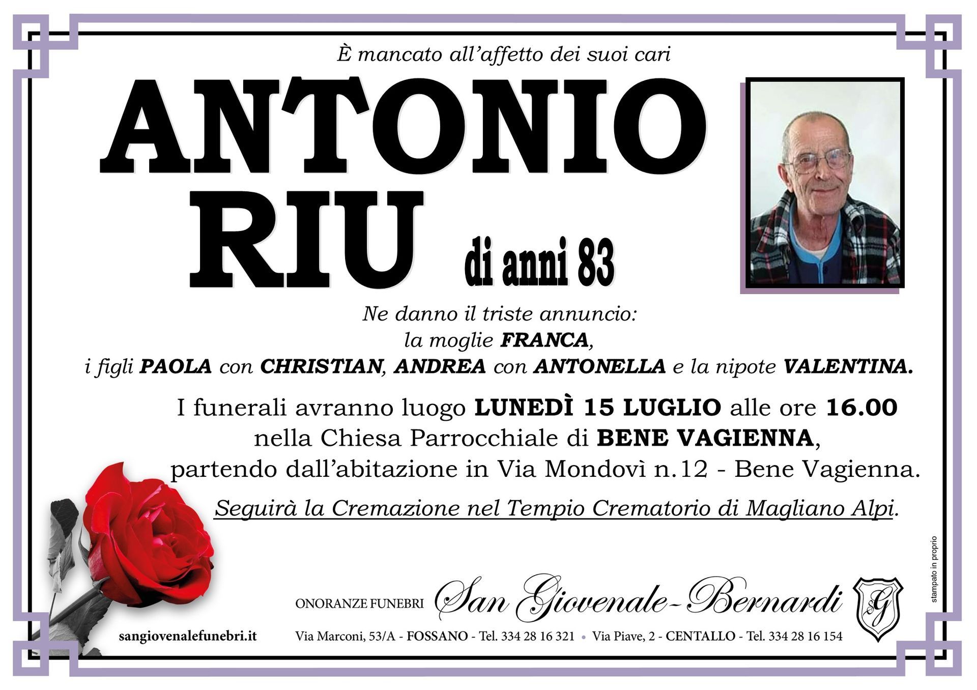 La moglie Bianca, le figlie Emanuela e Paola unitamente ai famigliari tutti del caro, commossi per la grande dimostrazione di affetto, vicinanza e stima ricevuta, ringraziano tutti coloro che si sono uniti per l’ultimo saluto al loro caro e conserveranno di lui affettuosa memoria.