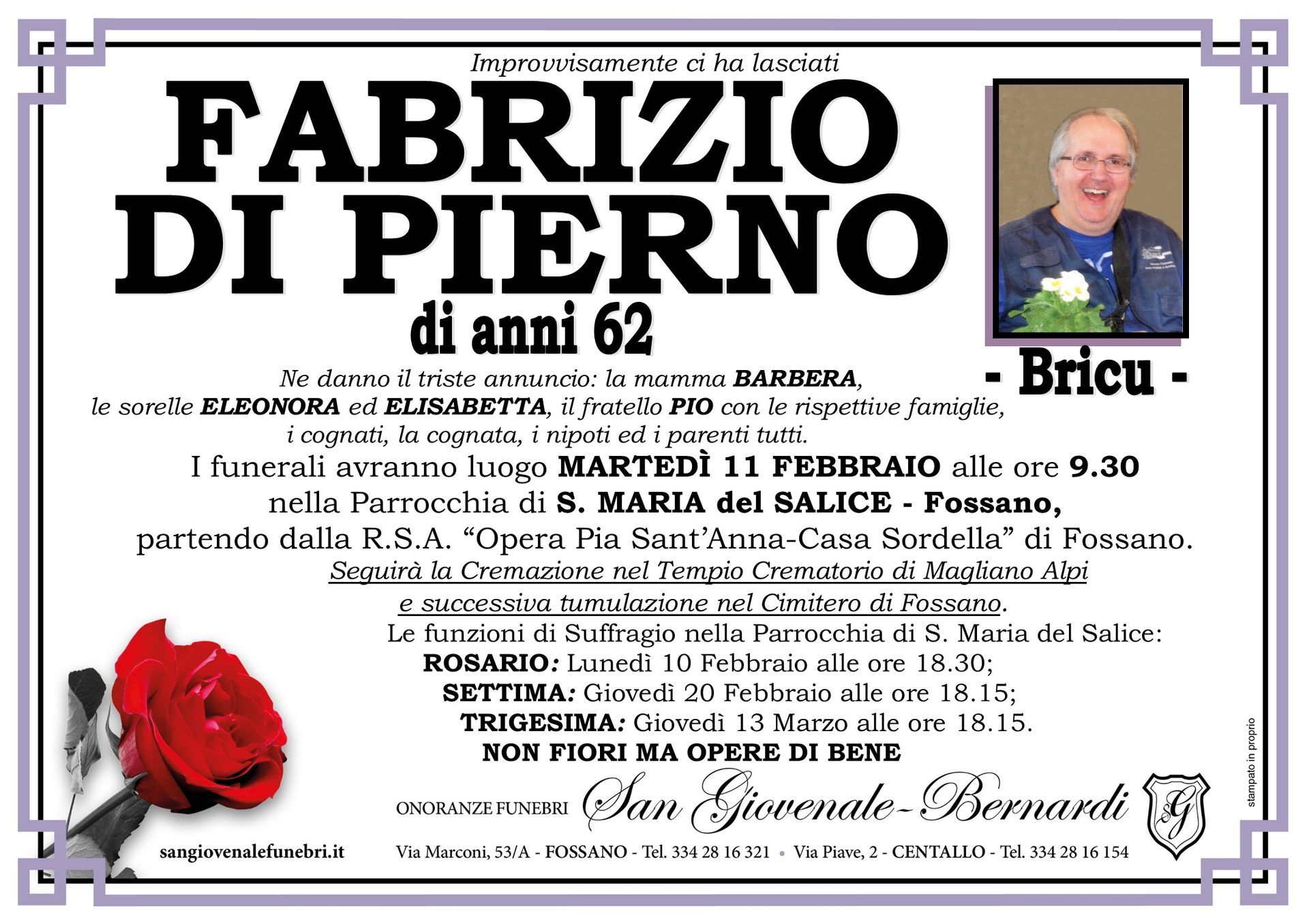 Ringraziamo in particolare: tutto il Personale ed i Volontari della RSA “Opera Pia Sant’Anna - Casa Sordella”, che da parecchi anni, era diventata la sua casa; il Personale Sanitario degli Ospedali di Savigliano, Cuneo e Saluzzo, per le cure prodigate in questi mesi; la leva 1963 per la sua presenza; l’Inter club “Diego Milito” di Fossano per la vicinanza e l’affetto dimostrati a lui ed a noi familiari; Ragazzi e educatori del Centro Tessere di Fossano, dove ha passato momenti felici, per la loro commossa partecipazione; la Croce Bianca di Fossano per la cura che ha sempre mostrato durante ogni trasporto in questi anni; il gruppo Cunifer ed il Centro Puzzle di Torino per i messaggi di cordoglio ricevuti; infine, non meno importanti, gli amici di sempre e quelli conosciuti durante questi anni impegnativi, per la loro fondamentale e vitale presenza nella vita di Fabrizio.