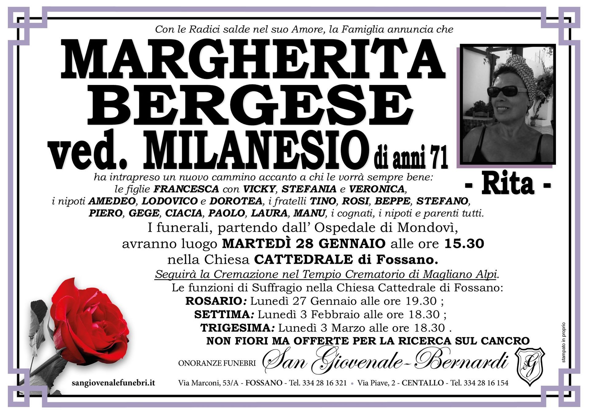 La famiglia coglie l’occasione per ringraziare di cuore tutti coloro che hanno fatto sentire la loro vicinanza ed hanno condiviso i personali ricordi dell’amata mamma e nonna Margherita.