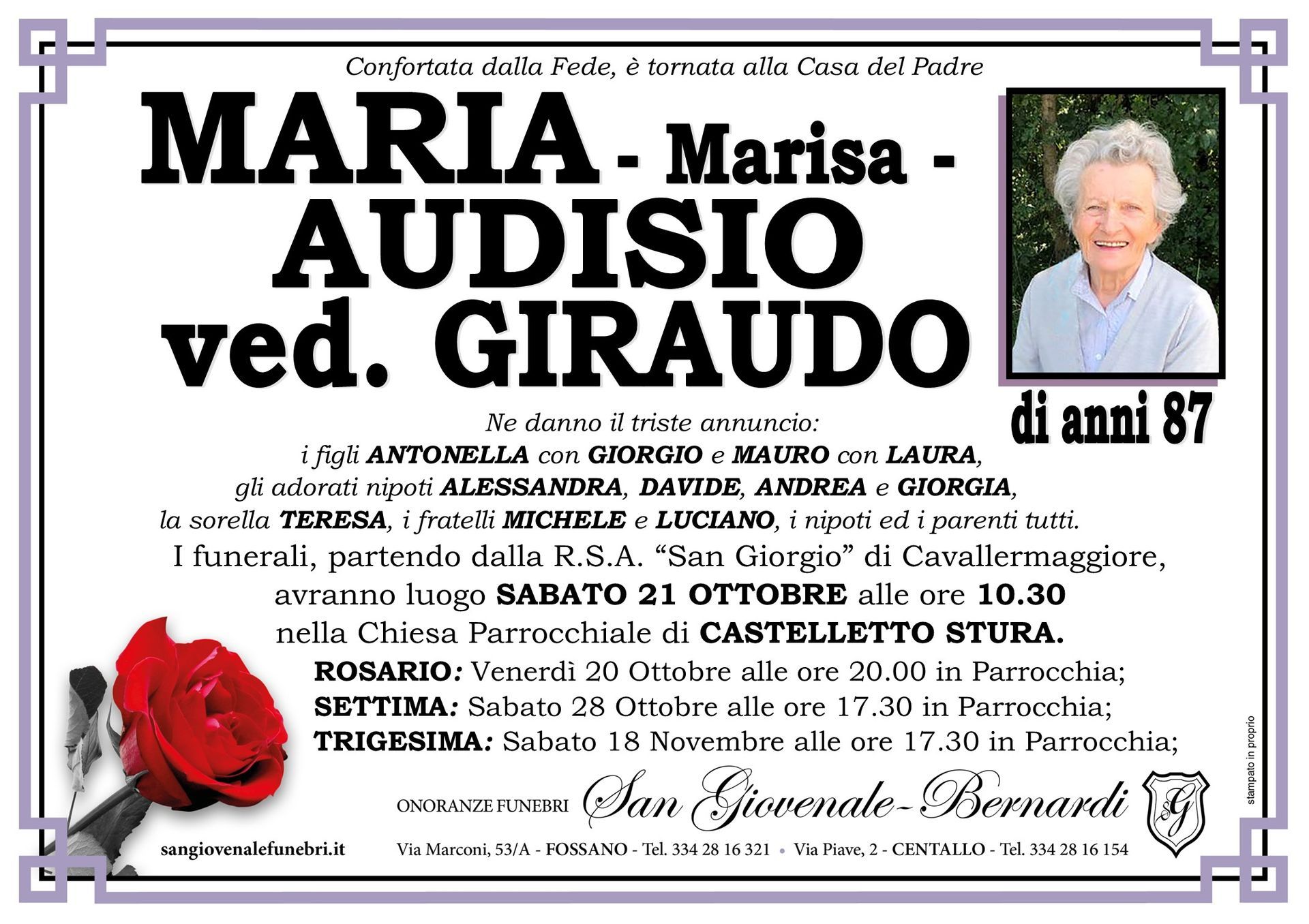 Un grazie particolare viene rivolto alla Dott.ssa Occhipinti Grazia, alla Direzione ed al Personale tutto della RSA “F.lli Ariaudo” di Levaldigi, ai parenti ed ai vicini di casa.