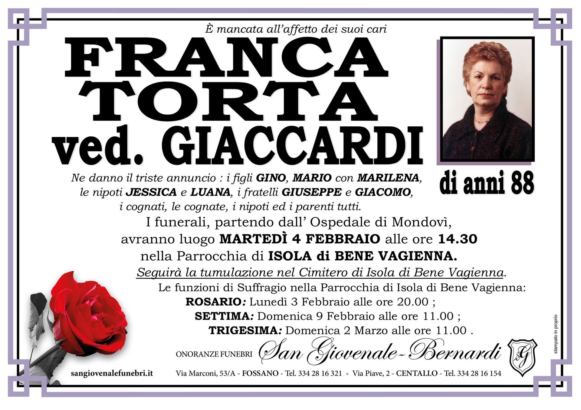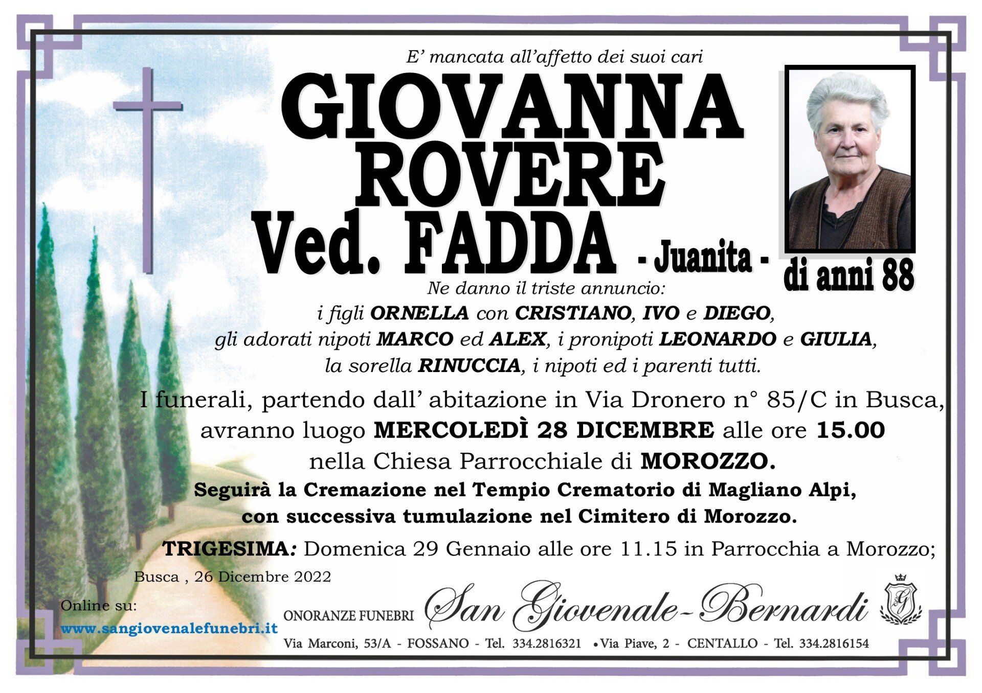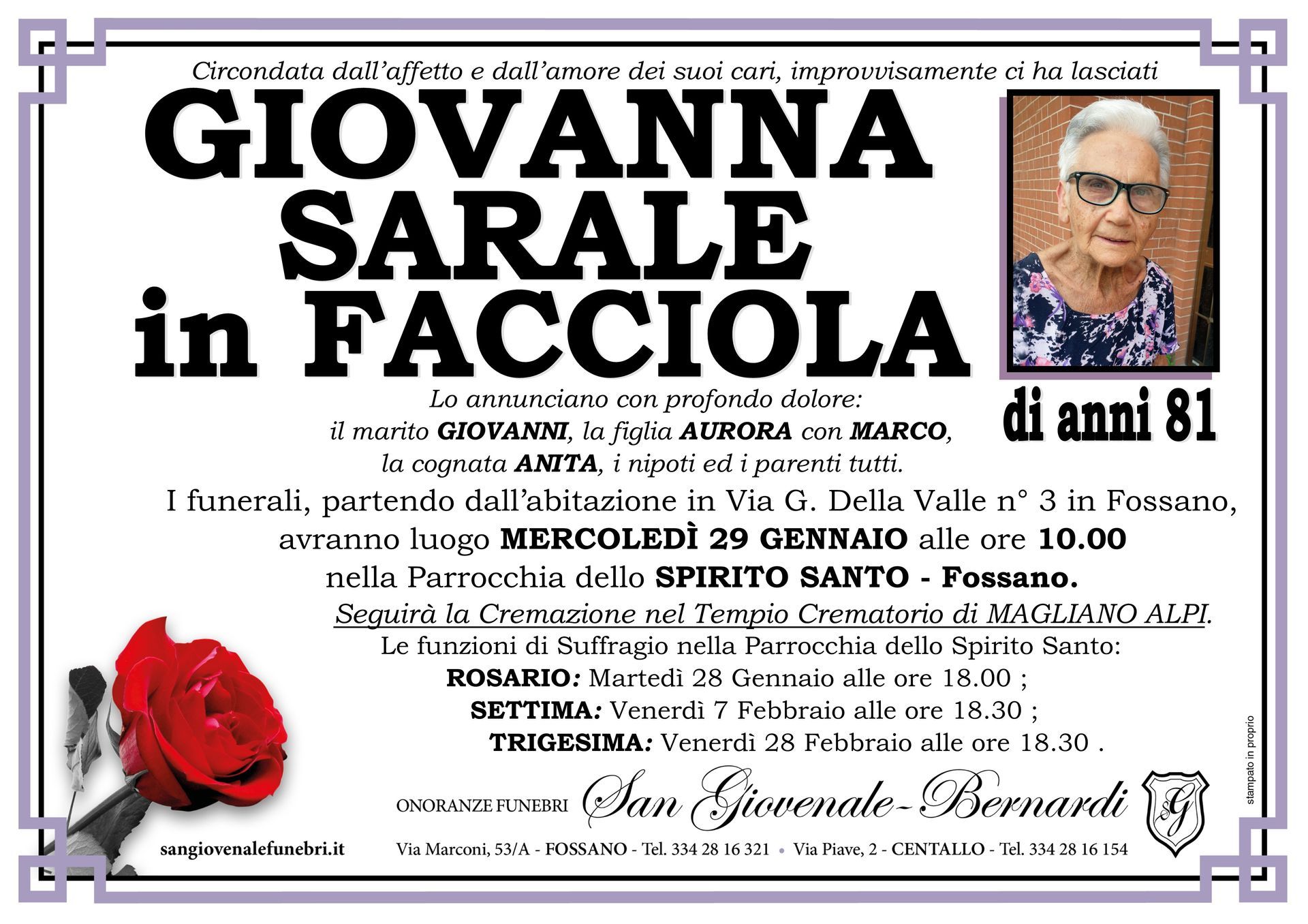 I famigliari, riconoscenti per la grande dimostrazione di affetto e stima ricevuta, nell’ impossibilità di farlo singolarmente, ringraziano tutti coloro che si sono uniti al dolore per la scomparsa della cara Giovanna e conserveranno affettuosa memoria.