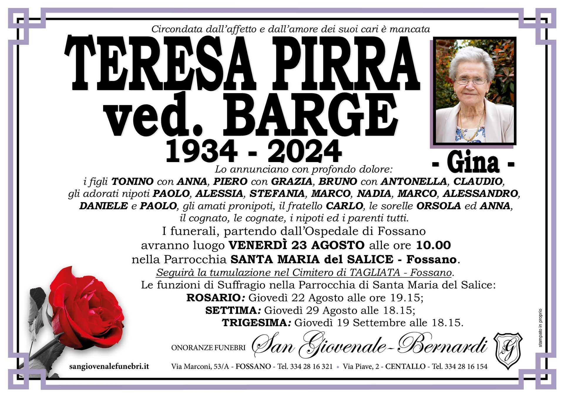 I figli con le rispettive famiglie ed i parenti tutti della cara, ringraziano commossi e riconoscenti quanti con vicinanza, affetto, conforto e partecipazione alle esequie hanno condiviso il loro dolore.